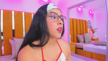 „Ich habe nur dafür meine liebsten schwarzen Dessous angezogen. Ich spüre, wie der Rhythmus meinen Körper übernimmt, während ich für dich tanze. Mein Spiegelbild zeigt dir alles, jede Kurve, jede kleine Bewegung, die ich mache. Ich liebe es, dich so zu necken, die Zunge herauszustrecken und dich direkt durch meine Brille anzusehen. Ich frage mich, was du denkst, während du zusiehst. Vielleicht willst du näher kommen? Ich wärme mich gerade erst auf und möchte diese Energie mit dir in unserem eigenen privaten Raum teilen.“
